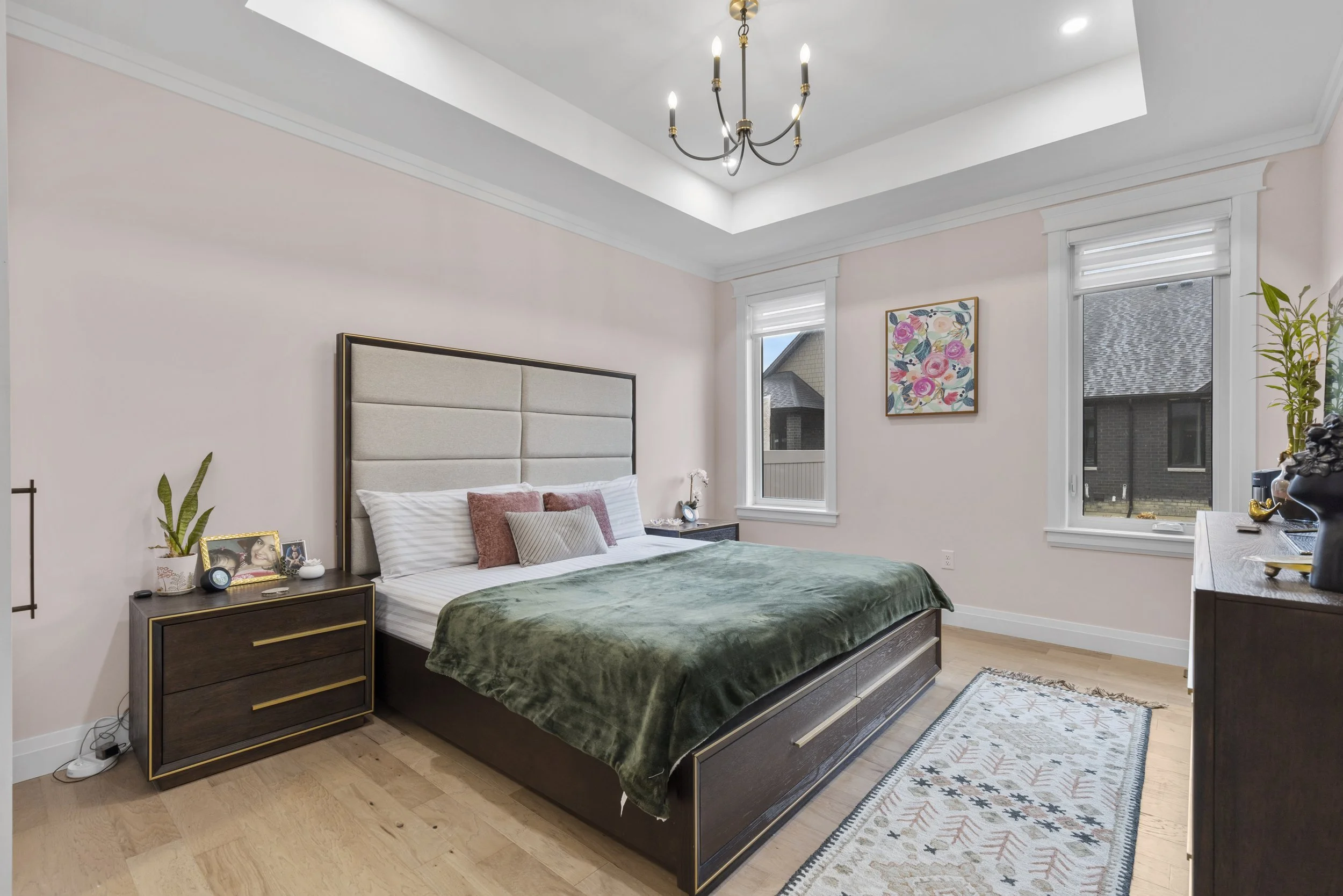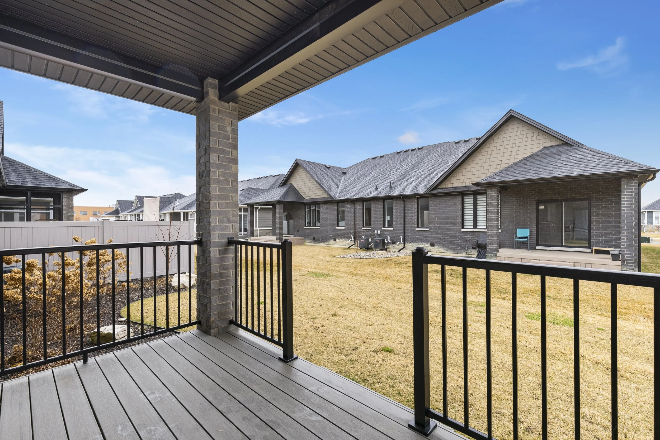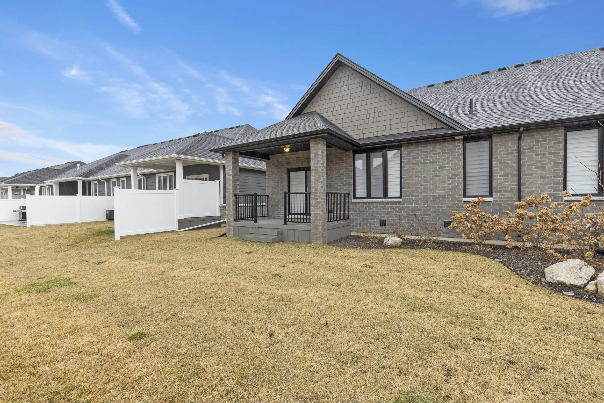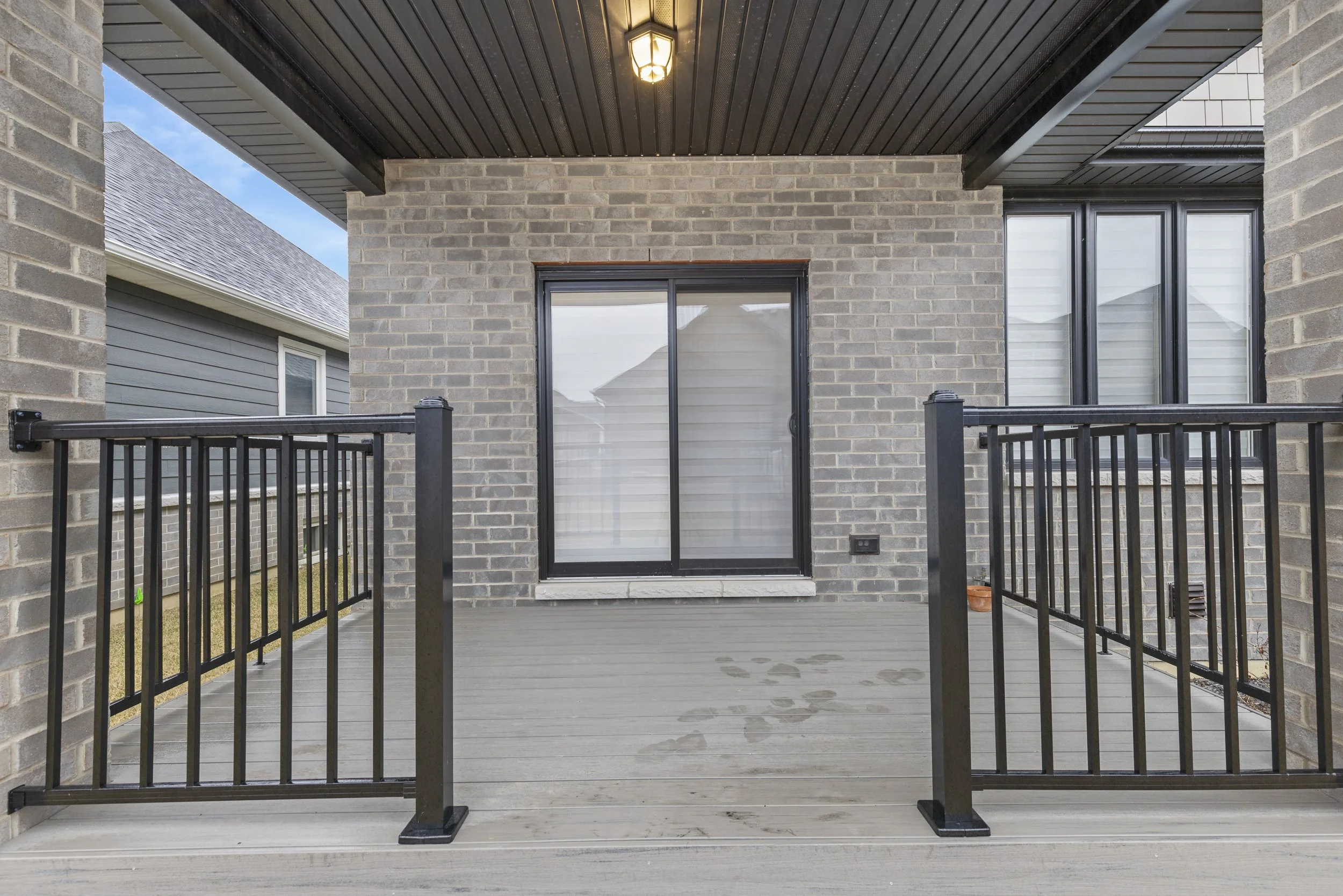 Welcome to this beautifully end-unit townhome (2-plex) offering the perfect blend of style, comfort, and modern convenience. This spacious home boasts 5 large bedrooms (2+3) and 3 bathrooms (2+1), including a luxurious primary suite with a spa-like ensuite. Enjoy soaring cathedral ceilings in the open-concept kitchen and great room, The gourmet eat-in kitchen features high-end appliances, sleek finishes, and tons of storage. Main floor laundry adds convenience, while the fully finished basement offers additional living space for family or guests. Step outside to a covered rear porch with composite decking, perfect for relaxing or entertaining outdoors. The exterior is complete with a concrete driveway and walkway, fully sodded yard, and an underground sprinkler system for easy maintenance. Additional upgrades include smart locks, automated blinds, smart lighting, Nest thermostat, as well as a water pump and humidifier for year-round comfort.
